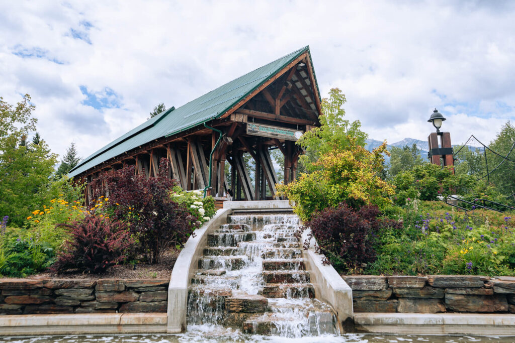 The main landmark is the Kicking Horse Pedestrian Bridge, the longest freestanding timber bridge in Canada stretching 46 meters in length across the Kicking Horse River. From here, you can continue for about a mile along the greenway by the river, or follow one of these interactive walking routes.