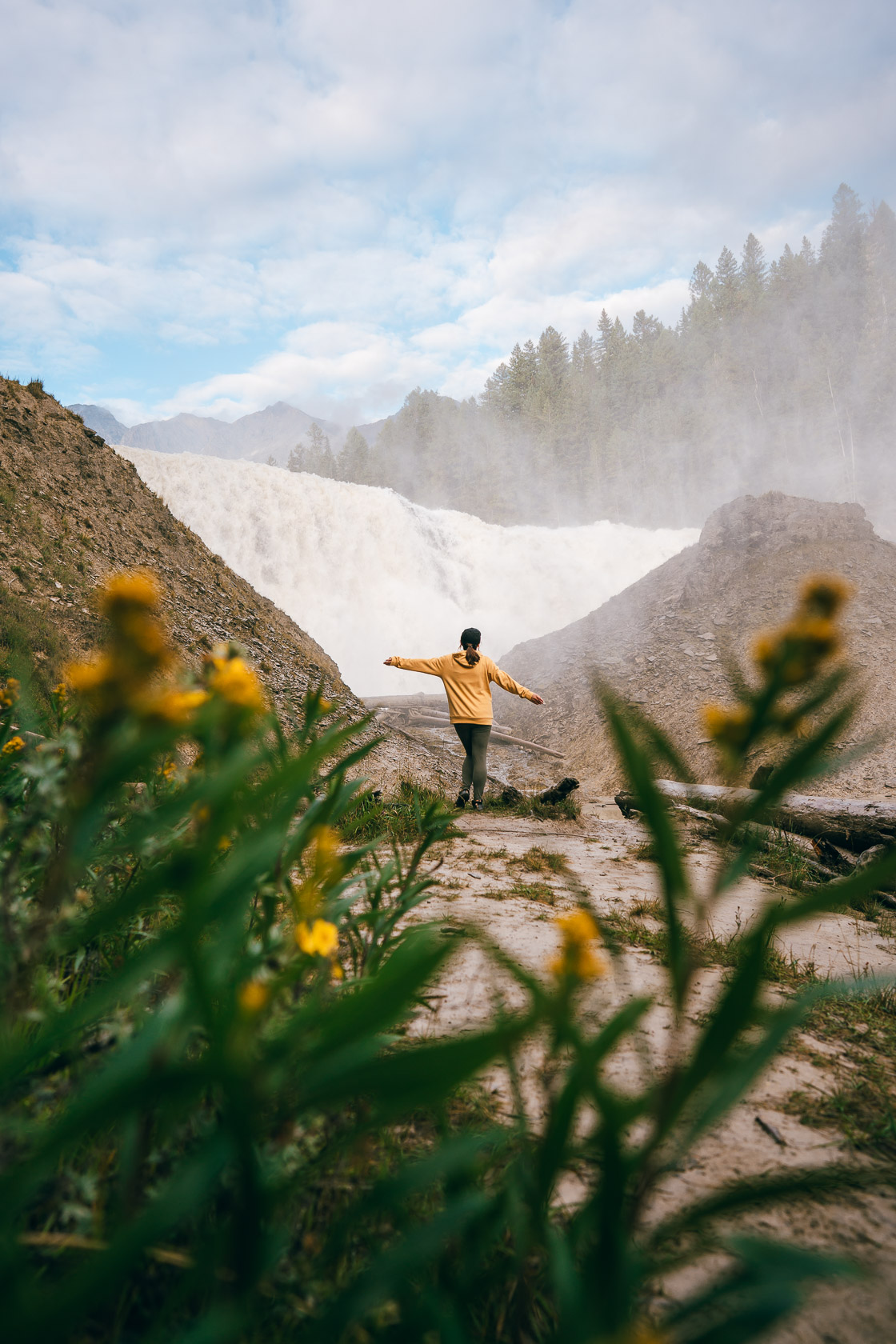 This is yet another waterfall in Yoho National Park. It requires a little bit of hiking through the forest, but the trail is relatively easy and only 5 km return. The waterfall is 18 m high but 150 m wide, making it the largest waterfall on the Kicking Horse River. You can even hike all the way to the base! The volume of water is immense, so be prepared to get wet! 😉